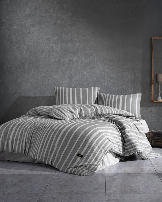Dark Grey Bedding Set with Light Grey Stripes